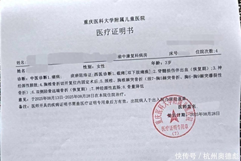孩子马上就被送往了医院,医生初步诊断为脊柱多处骨折,高位截瘫。