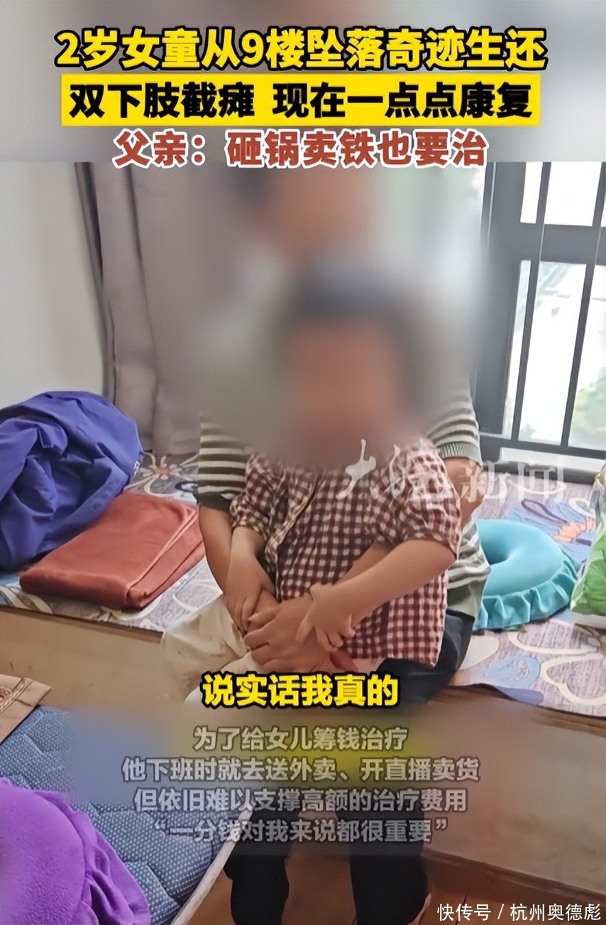 现在爸爸每天上班、送外卖、开直播,全靠他一个人撑着这个家,他说:“不管多难,我都要救我女儿,砸锅卖铁也得治!”